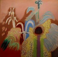 buitengewoon boeiend om te zien wat Cox uit dat onderwerp naar voren gehaald had. Misschien hebt u u ook afgevraagd wat het werk links voor titel heeft. Het is Achilles achtervolgt Hector. De schilderijen blijven figuratief, maar lijken beelden uit een kwade droom. Hier rechts ziet u Warriors. De cyclus in de tentoonstelling telt, schat ik, zo'n 15 werken.